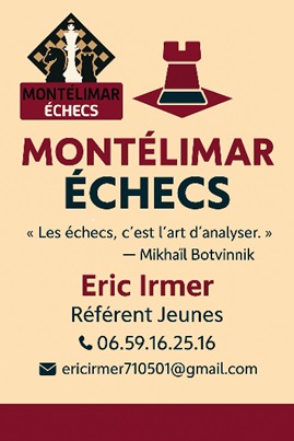 Très cordialement, Eric, « Référent Jeunes » de Montélimar Echecs.
